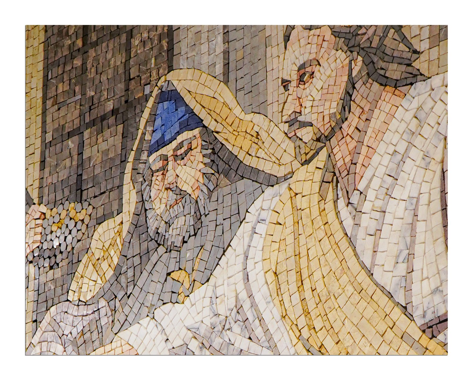 This mosaic depicts the biblical story of Jesus and the sinful woman, likely in the house of Simon the Pharisee.