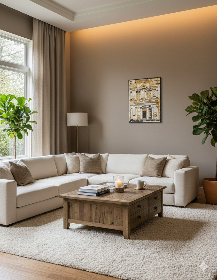 Natural Earth Tones: Sourced from authentic stone, the warm ochre, cream, and charcoal hues bring an organic, grounding energy to any room.