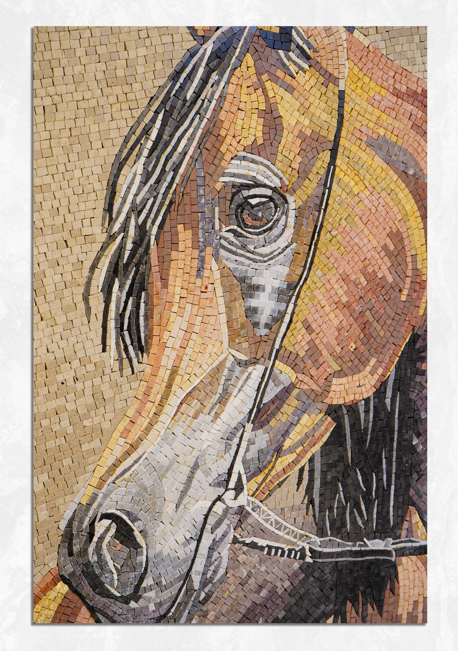 Elevate your space with the timeless elegance of the the Terra Horse. This is not just a mosaic; it is a labor of love, meticulously assembled piece by piece using only 100% natural stones.