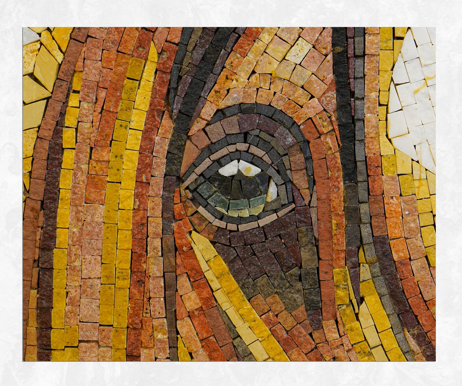 Bring the raw beauty of nature indoors with "The Noble Pair." This large-scale mosaic art depicts the soulful gaze of two horses against a vibrant, geometric background.